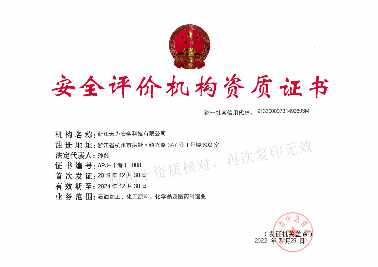 1 | 安全評(píng)價(jià) | APJ-(浙)-008 | 石油加工業(yè)、化學(xué)原料、化學(xué)品及醫(yī)藥制造業(yè); |
